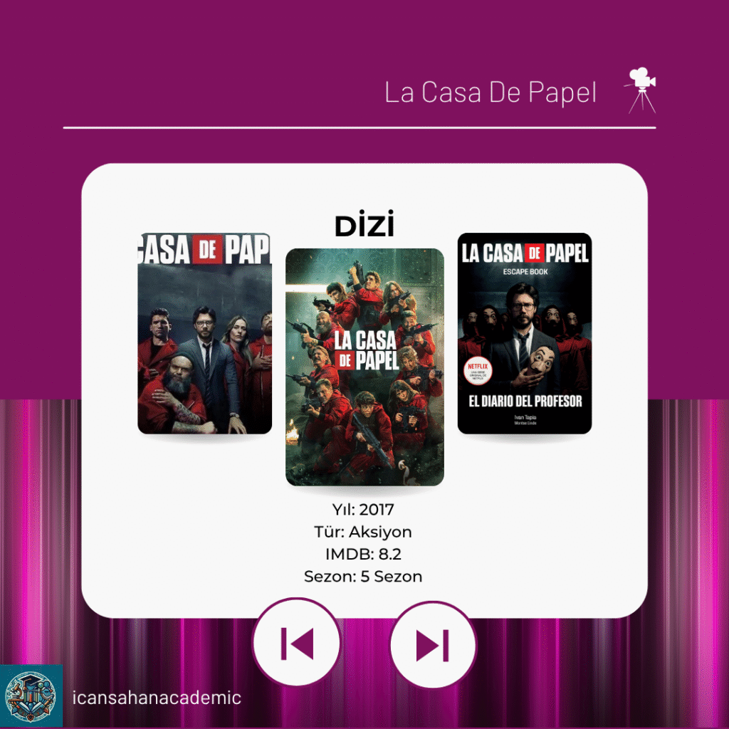 5 sezonluk bir dizi olan La Casa De Papel dizisi bence gelmiş geçmiş en merak uyandıracak dizilerin başında geliyor. Kendini bu operasyonlara adamış bir ekip ve her birinin ayrı hikayeleri var. Başlarında ise koca ülkeleri dize getirebilecek düzeyde zeki ve işine çalışmış bir profesör. Diziyi izlerken içinizden geçen en yoğun duygu gelecek bölümde ne olacak acaba oluyor. Gerçekten hikayelerin birbiri ile bağlantısı, olay örgülerinini dizimi ve planlamalar seyretmeye değerdi. Kendini isyana ve baş kaldırmaya adayan bir profesör ve etrafında farklı amaçlarla bir araya gelmiş bir ekip. En zor görevleri en zor yerleri yönetimleri altına alarak yapılması zor olanları ispatlamışlar. Aslında vermek istedikleri mesaj çok netti: Her şeyin bir sonu olabilir ve başarılabilir. İzlemekten keyif aldığım bu diziyi dizi tarihinin sayılı yapıtları arasında saymayı mantıklı buluyorum. Zaten kamuoyu ve filmseverler de İMDB puanıyla bu kanıyı doğrulamaktadır.